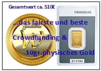 1000€ Miningpackage with 10 Gramm Gold-BarCrypto-Miningpackage 1000€