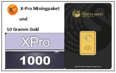 1000€ Miningpackage with 10 Gramm Gold-BarCrypto-Miningpackage 1000€